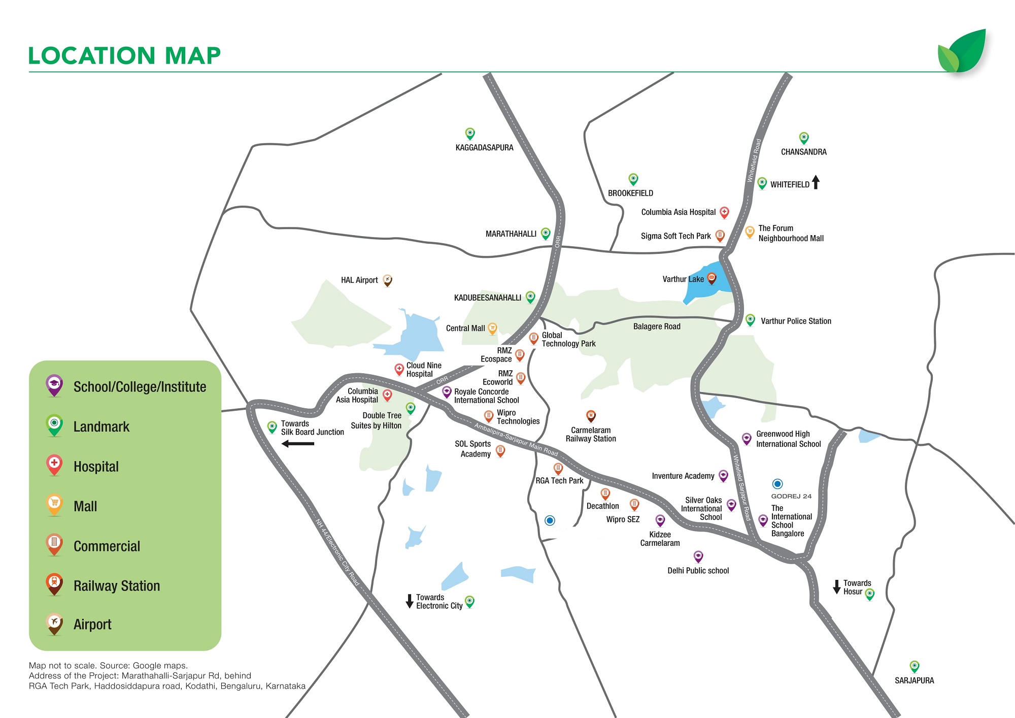 The location is right in the heart of South-East Bangalore. Several Reputed Schools, Hospitals and major IT Parks are within 10-min radius of the project.